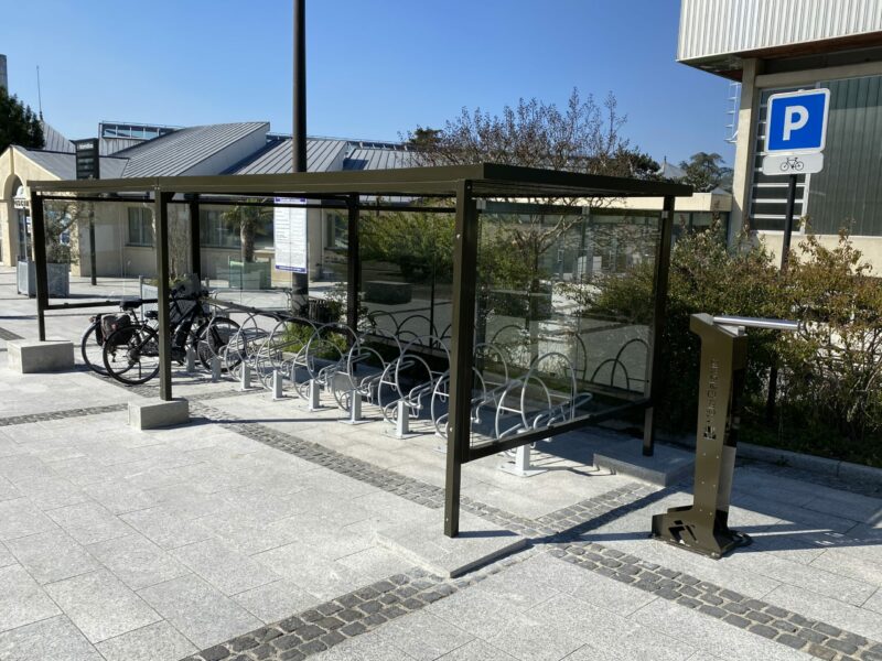 Large choix d’ Abri vélos-motos, supports vélos, garage à trottinettes, borne de recharge VAE, stations d’entretien, casier… toujours pratiques et esthétiques !