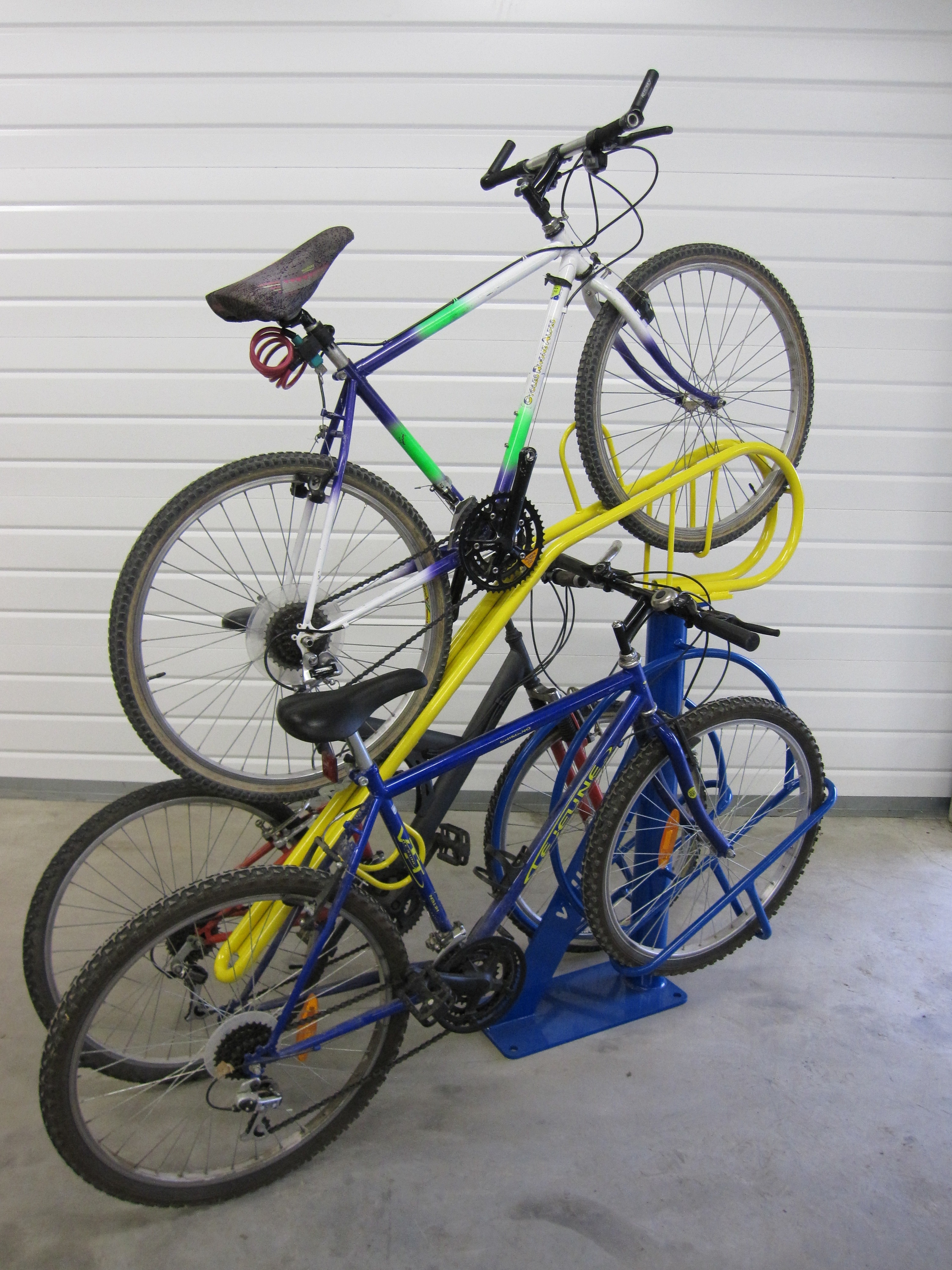 Les parkings vélos « double hauteur », appelés également « double rack », permettent d’utiliser la hauteur sous-plafond disponible. Solution idéale pour les boxes d’immeubles, ou pour ranger un maximum de vélos dans un minimum d’espace.